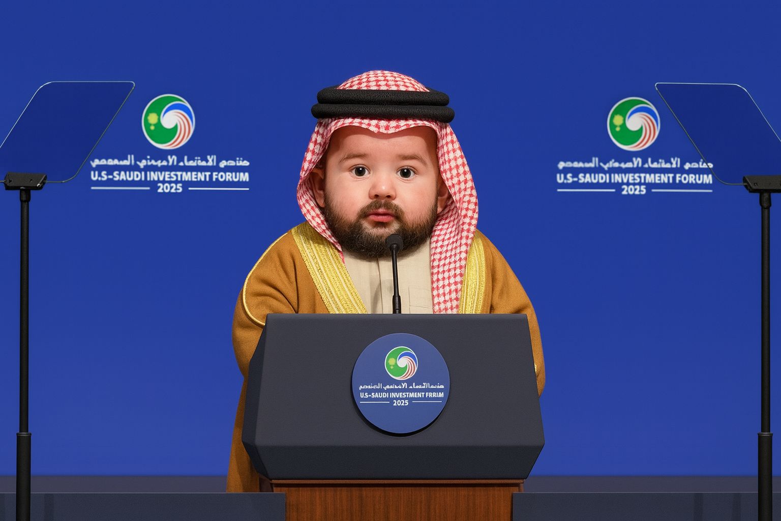 “Distinguished guests, please rise,” the voice said, and the stroller brigade obeyed. In rolled President Donald J. Trump and Crown Prince Mohammed bin Salman. Applause. Music. Someone whispered, “Heat. Heat.” The juice boxes trembled.